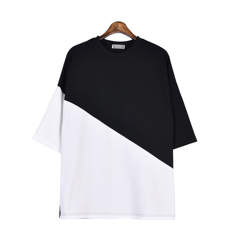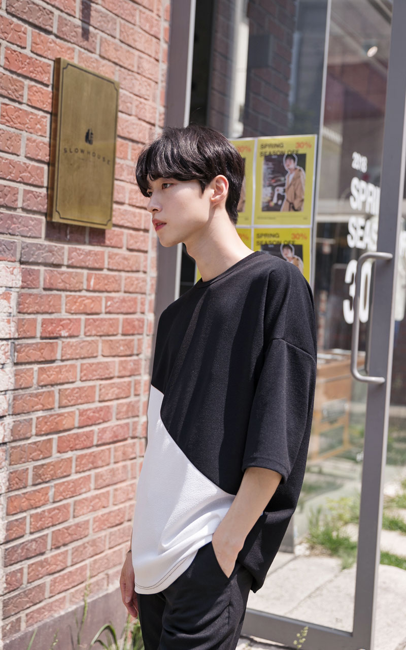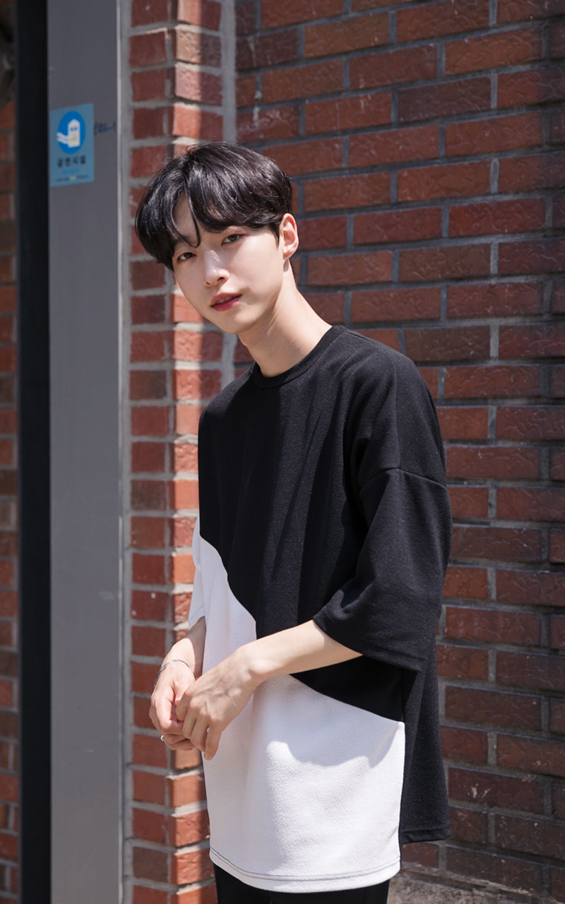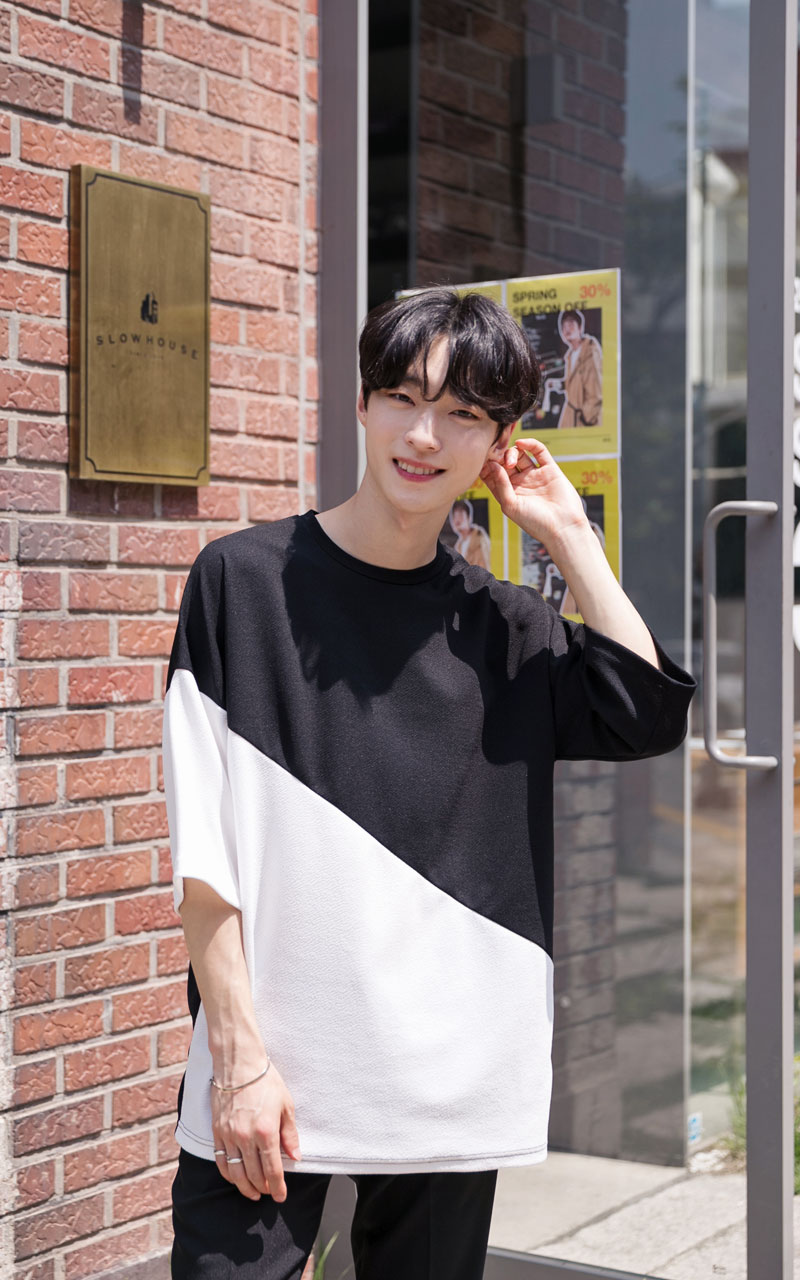 엠보 사선배색 반팔티셔츠