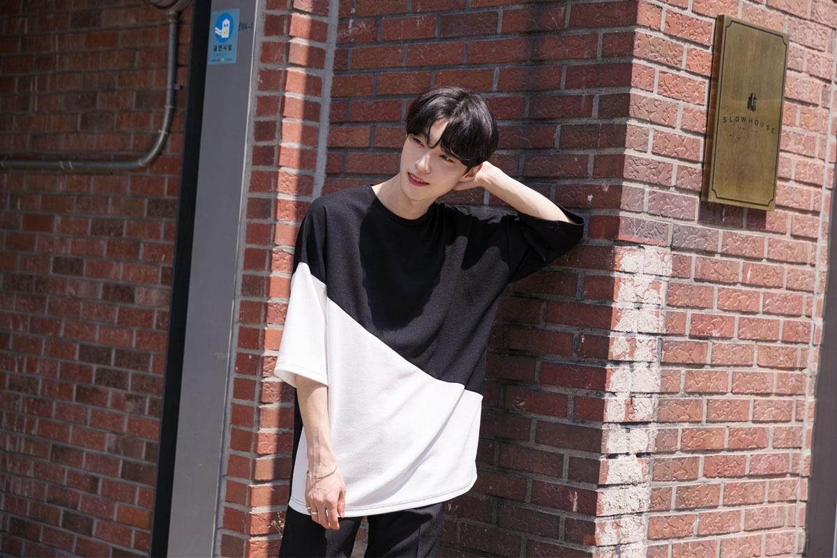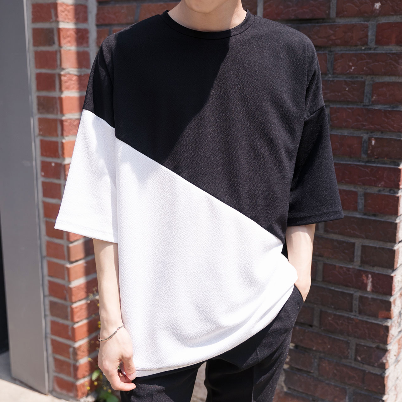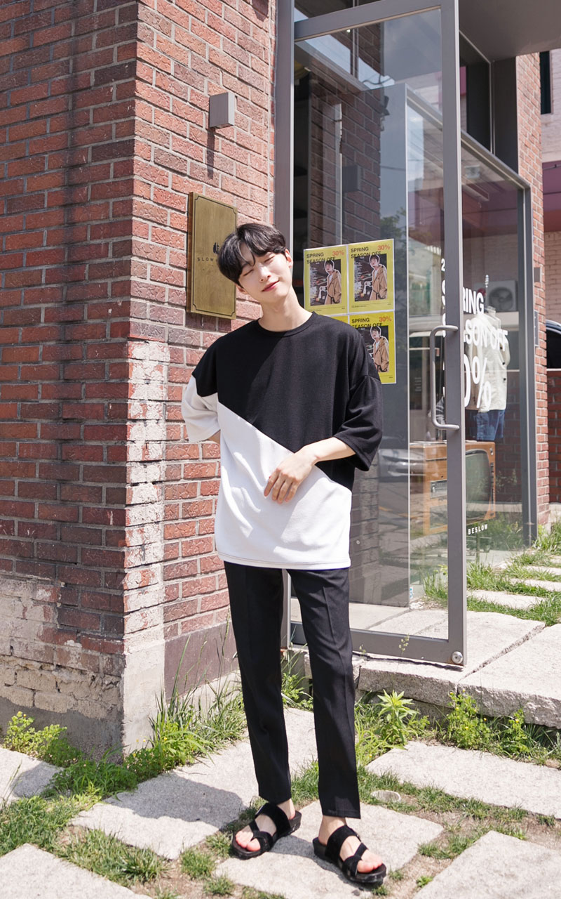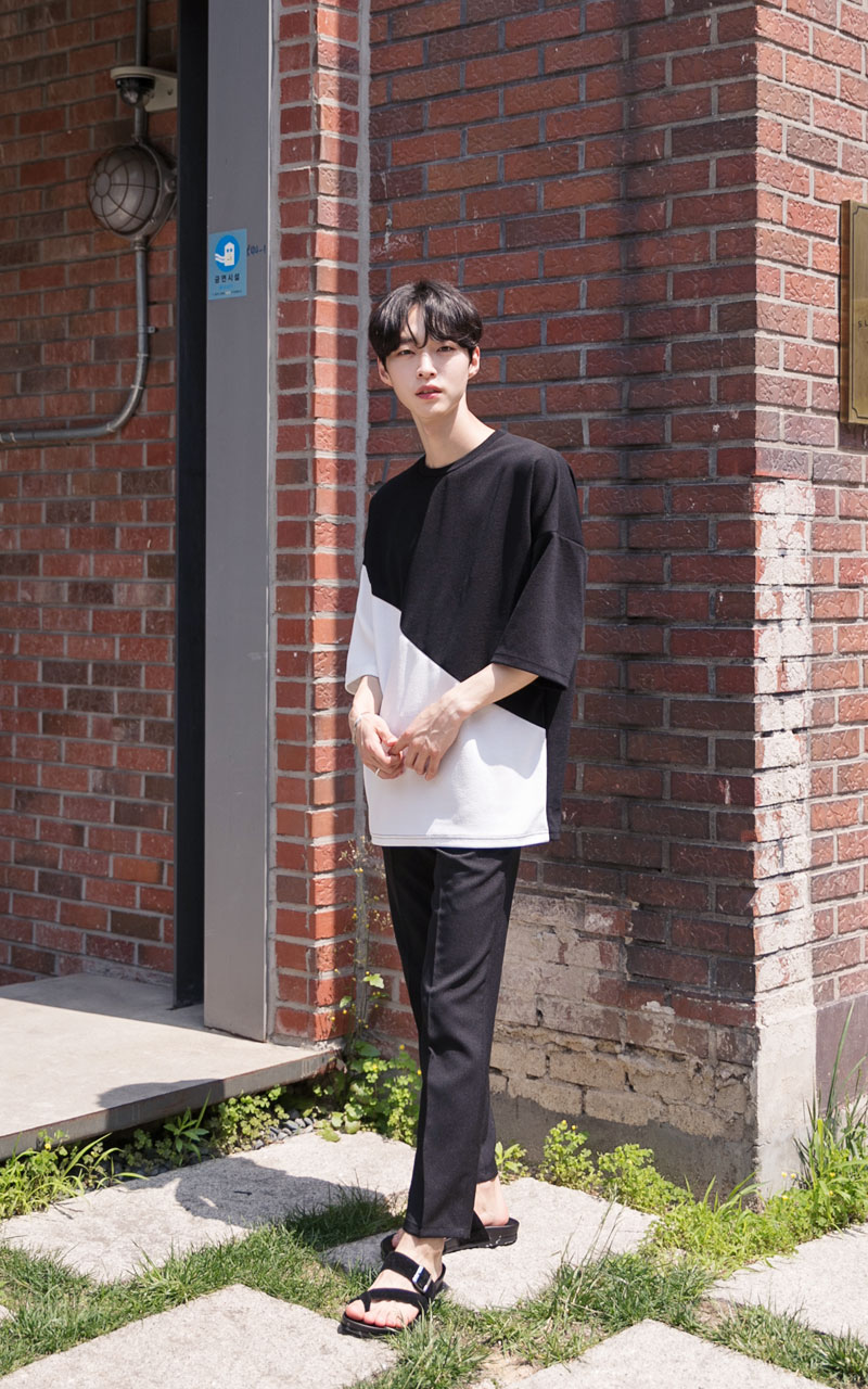 엠보 사선배색 반팔티셔츠