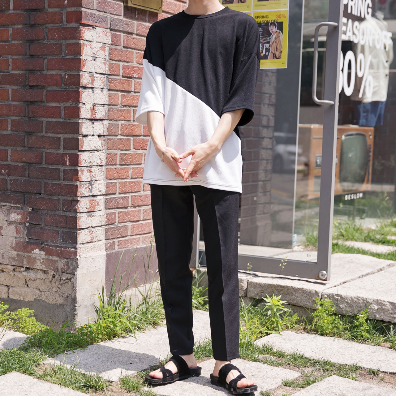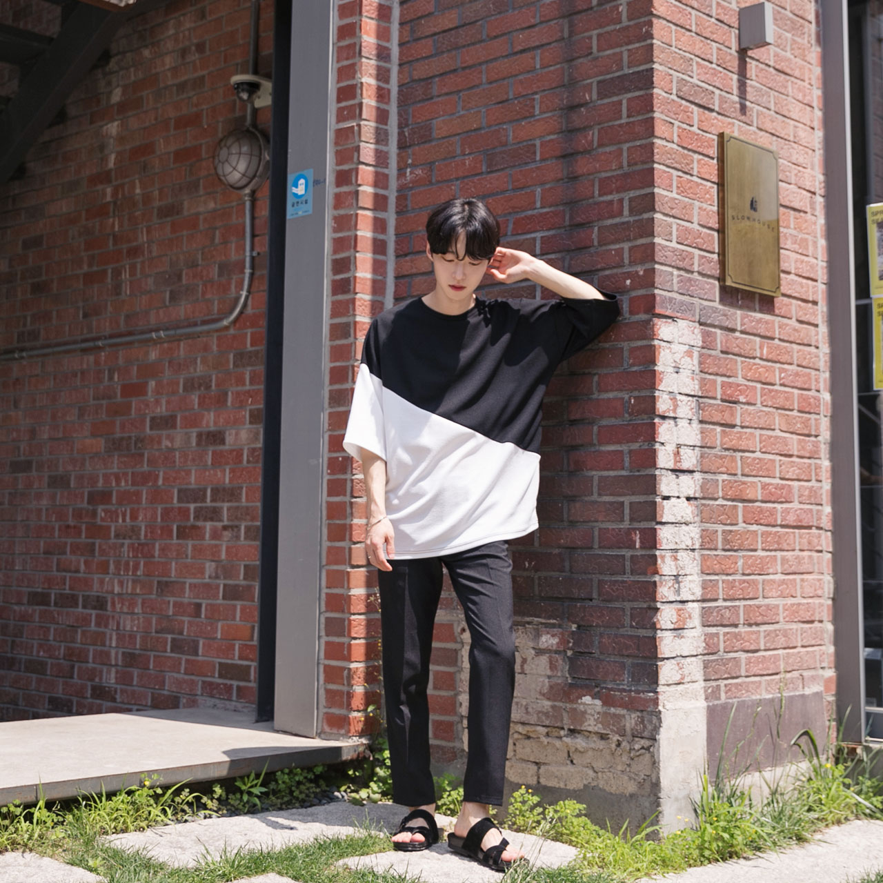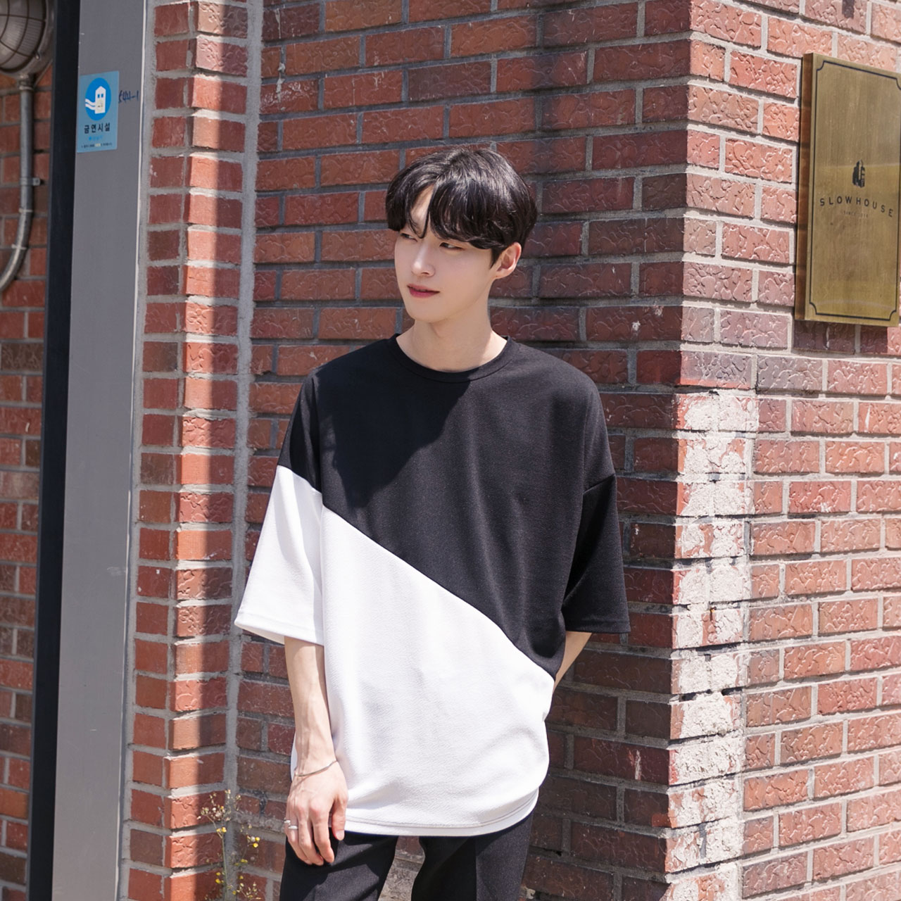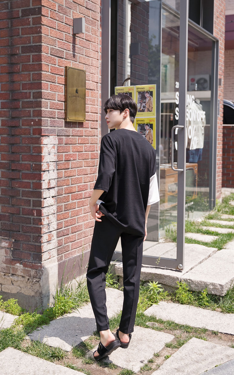 엠보 사선배색 반팔티셔츠