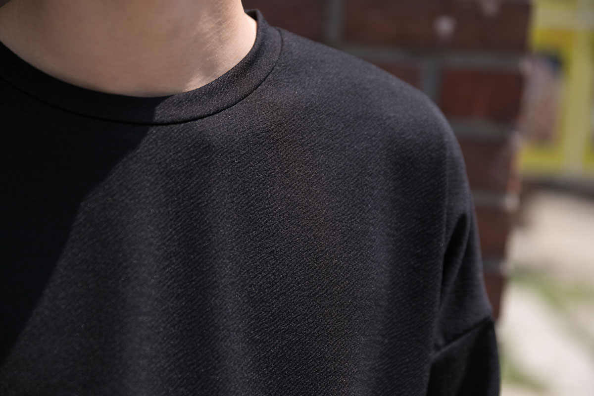 딱 좋은 깊이감의 라운딩. 감각적인 느낌의 배색을 연출하는 라운드 티셔츠입니다.FABRIC INFO