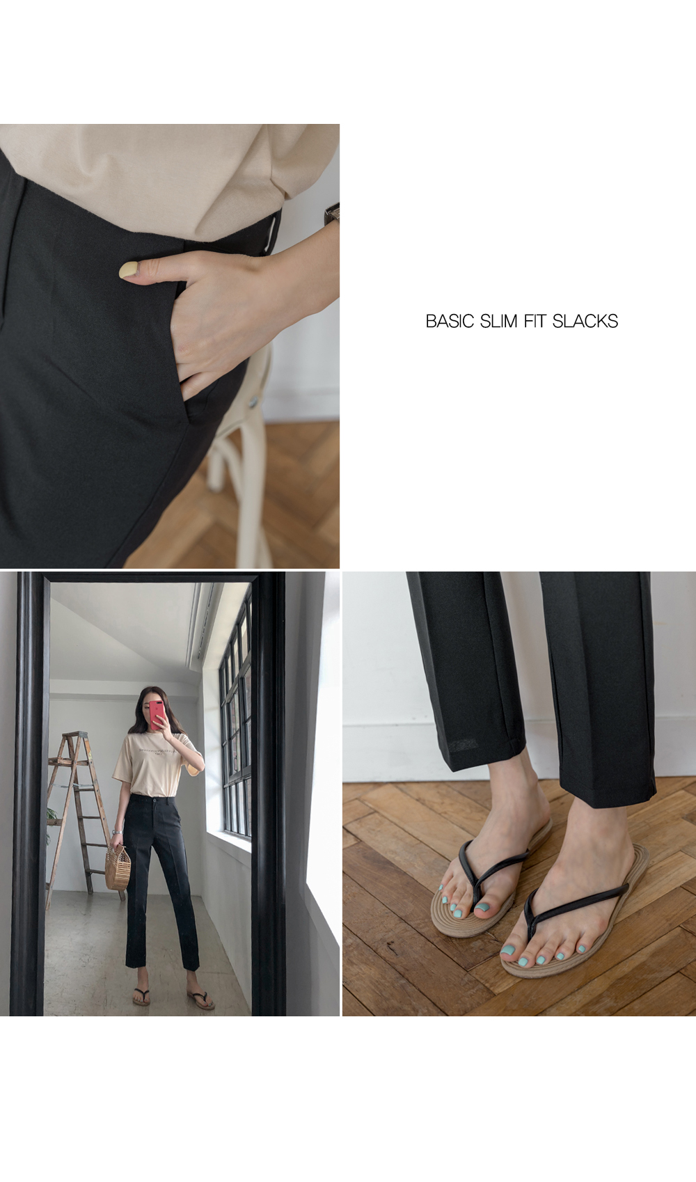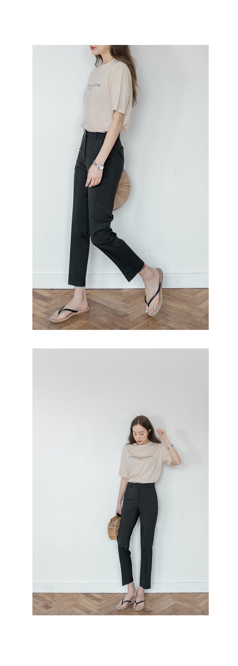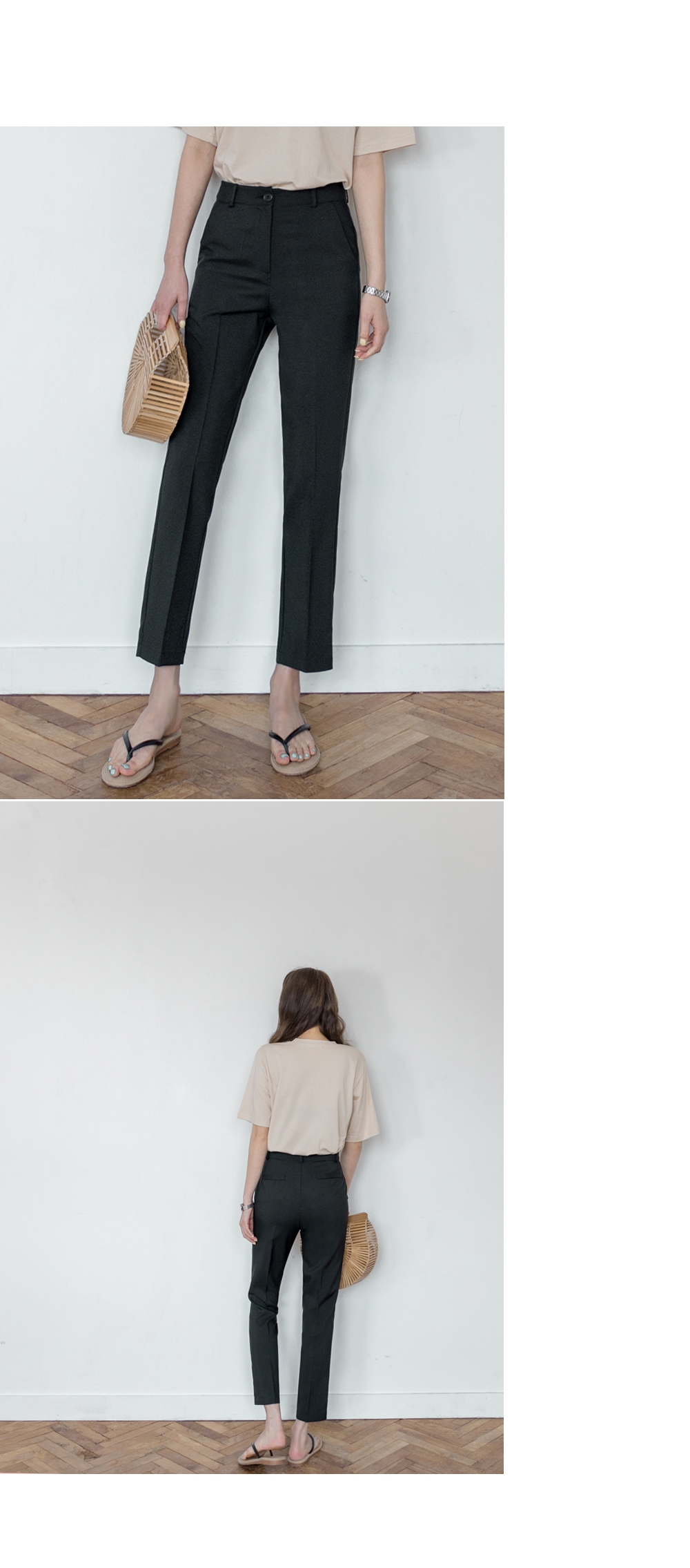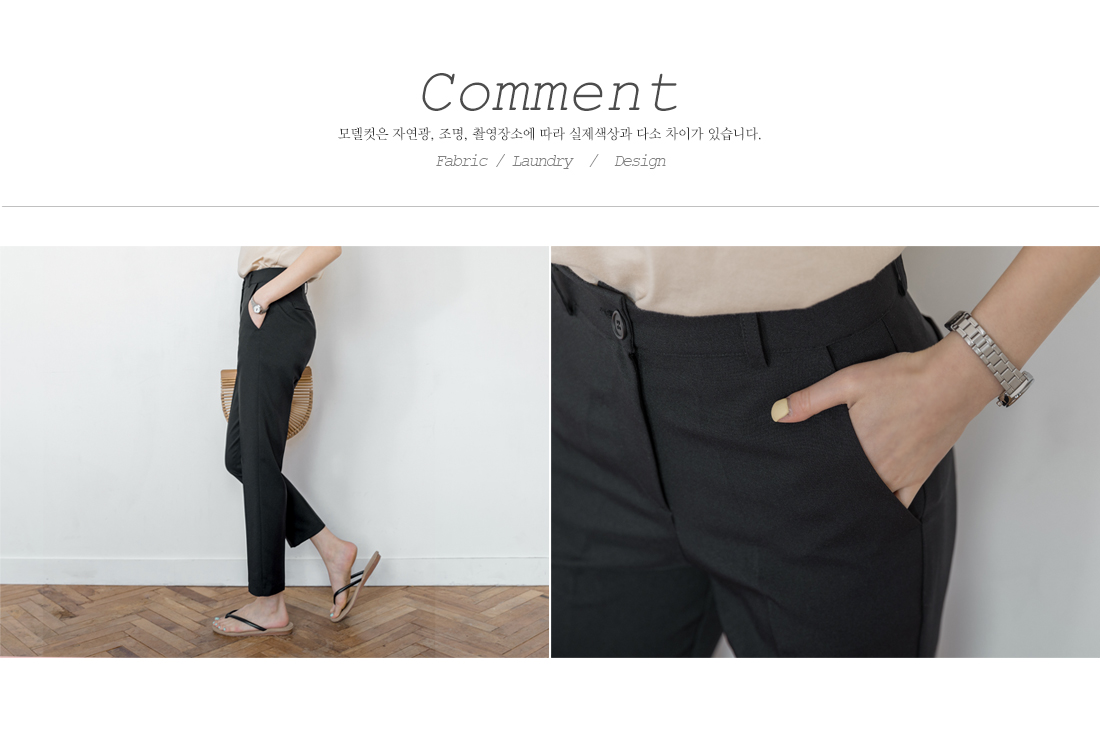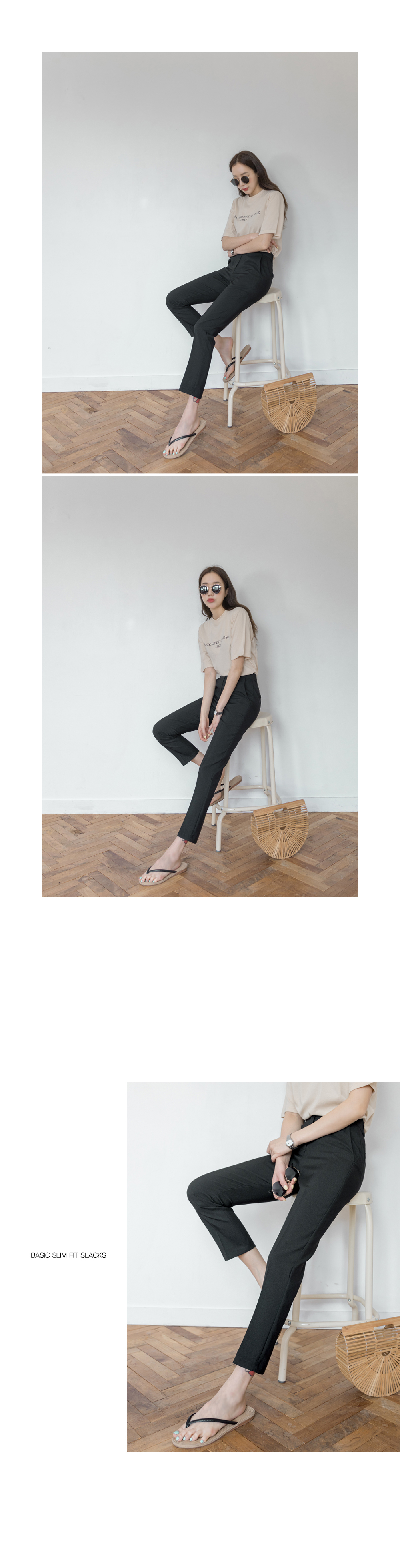 기본슬림한 핏감의 슬랙스로 허리부터 발목까지 가볍게 툭떨어져