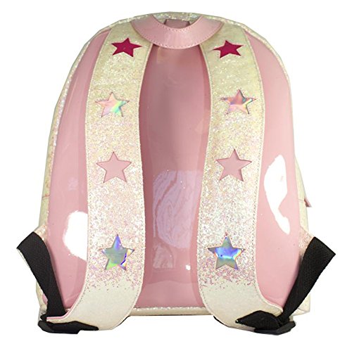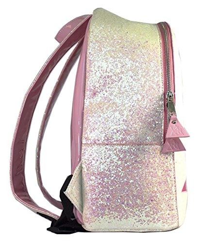 -. Feature : Over glittered pink and white fashion backpack / Wide, double zipper main compartment opening / Adjustable shoulder straps that can be extended to 38.5 inches / Suitable for kids and adults / Measures 12 inches tall, 10.75 inches wide, 4 inches deep, and 5.25 inch base