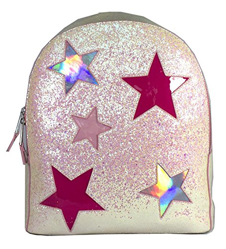 -. Title : YRU Pink & White Iridescent Glitter Holographic Star Fashion Backpack Purse