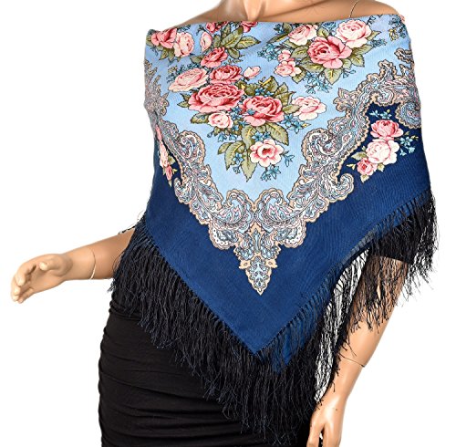 Product DescriptionPavlovo Posad Russian Shawl, Wrap, Scarf, Pashmina, Head Scarf, Neckerchief Blue Wool0