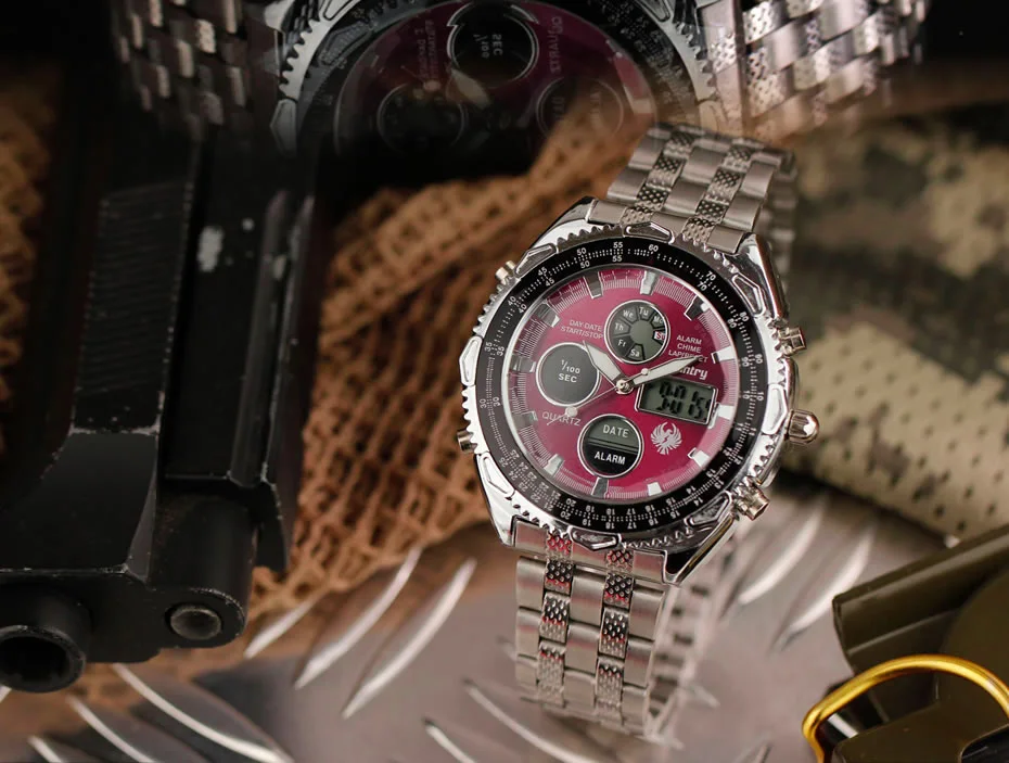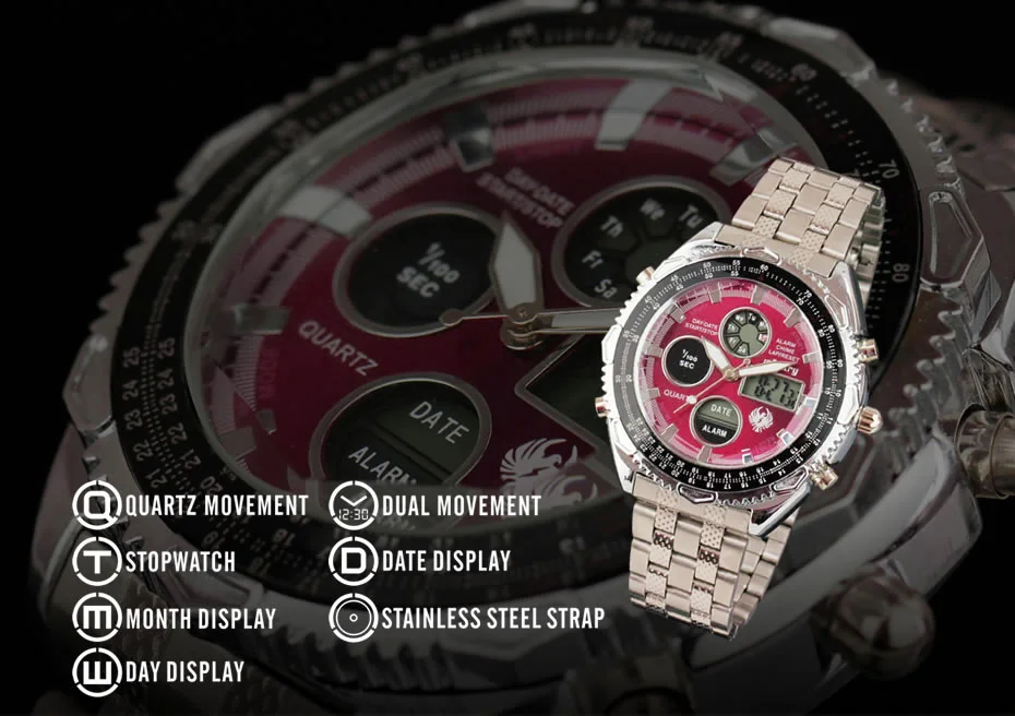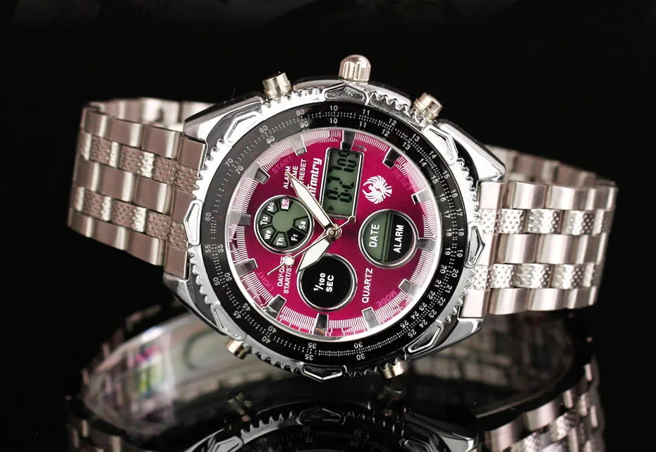 Feature:Complete Calendar,Shock Resistant,Luminous Hands,LED display,Auto Date,Week Display,Water Resistant,Chronograph,Luminous