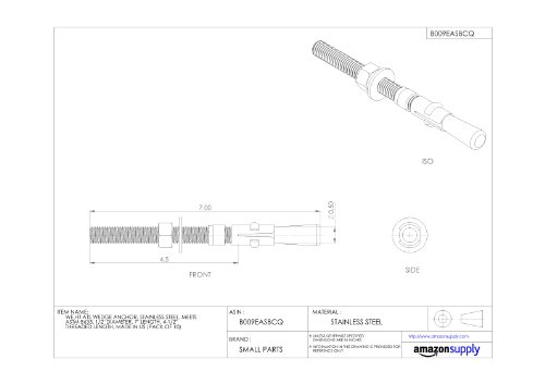 Wej-It Ankr-TITE ATS Wedge Anchor, 304 Stainless Steel, Meets QQZ-325Z Type II Class 3 and GSA FFS-325 Group II Type 4 Class 1 Specifications, 1/2" Diameter, 3-3/4" Length, 2-1/8" Threaded Length (Pack Of 10)