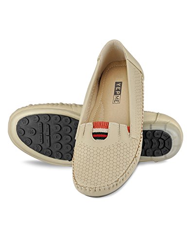 Product DescriptionColor: Beige Closing: Slip-on Material: Synthetic Upper Rubber Sole Heel Shape: Flat Care: Wipe with a clean cloth to remove dust.0