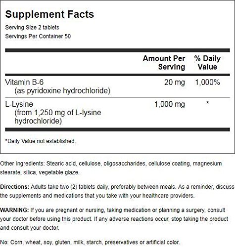L-LYSINE 500 mg with B-6 - An Essential Free Form Amino Acid with B-6 Vegetarian/Kosher. An essential amino acid important for growth, tissue, and collagen formation. B-6 aids in the utilization of Lysine.Feature