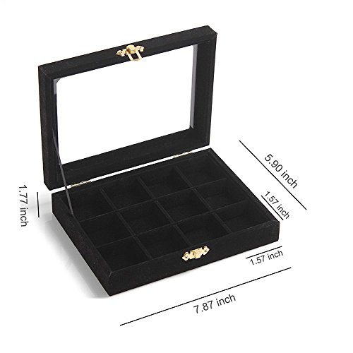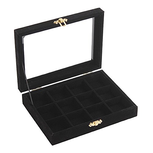 New Wayzon 12 Grids Jewelry Holder Organizer Box Storage Case Earrings Rings Disply with Lock for Women Girls (Black)