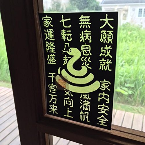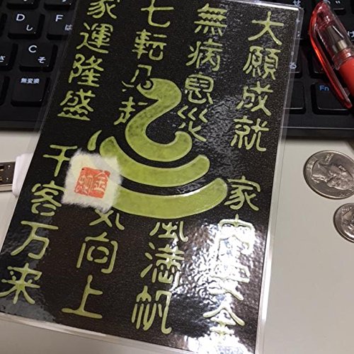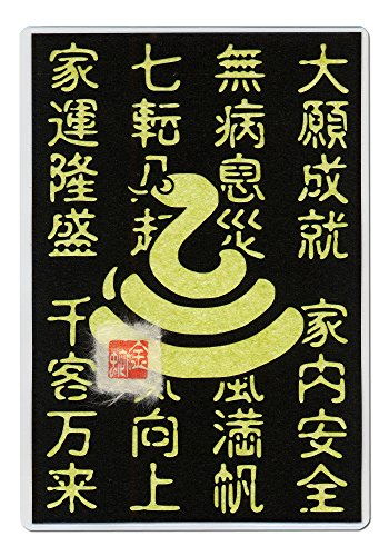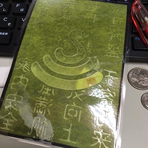 Cutout picture Japanese art collage KIRIE “Kanji characters that bring good fortune & White Snake” Made of Washi(Japanese paper) Green tea, 4” x 6”