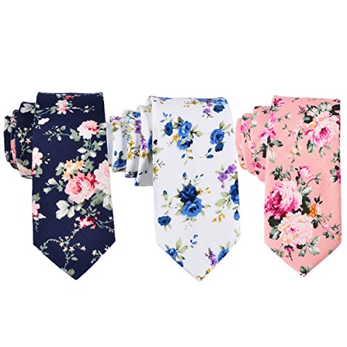 (EasyJoy)/Accessories/Ties/DIRECT FROM USA/EasyJoy Skinny Ties Men's Cotton Printed Floral Necktie (color 1)