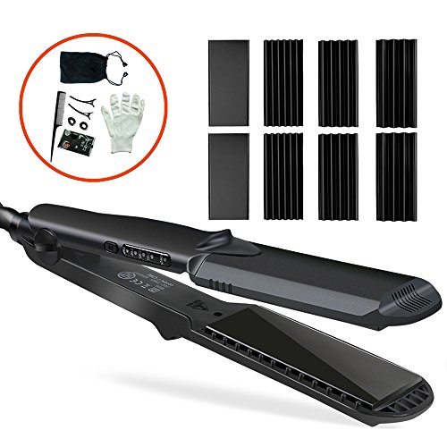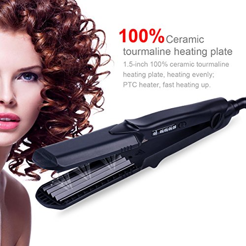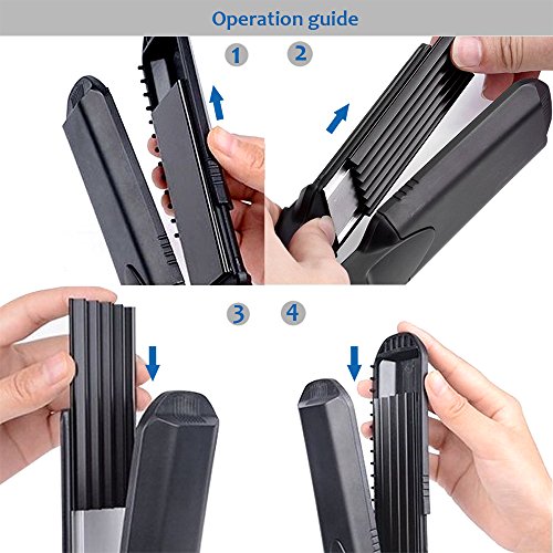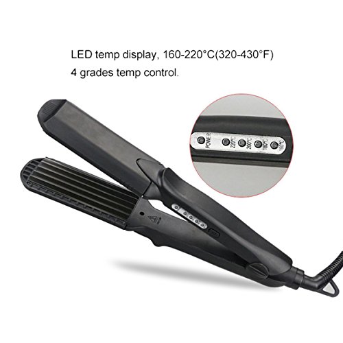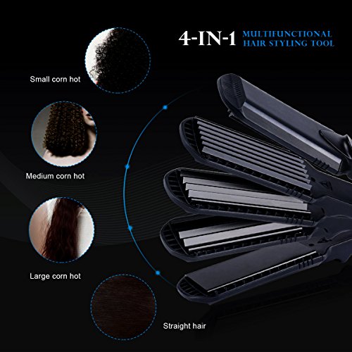 4-in-1 Interchangeable Plates Hair Styling Crimping Tool: L wave plate, M wave plate, S wave plate and flat plate, and it has prevent burns design function. Multi-functional hair styling tool, straight & curl corrugated wave, you can make different hair style everyday