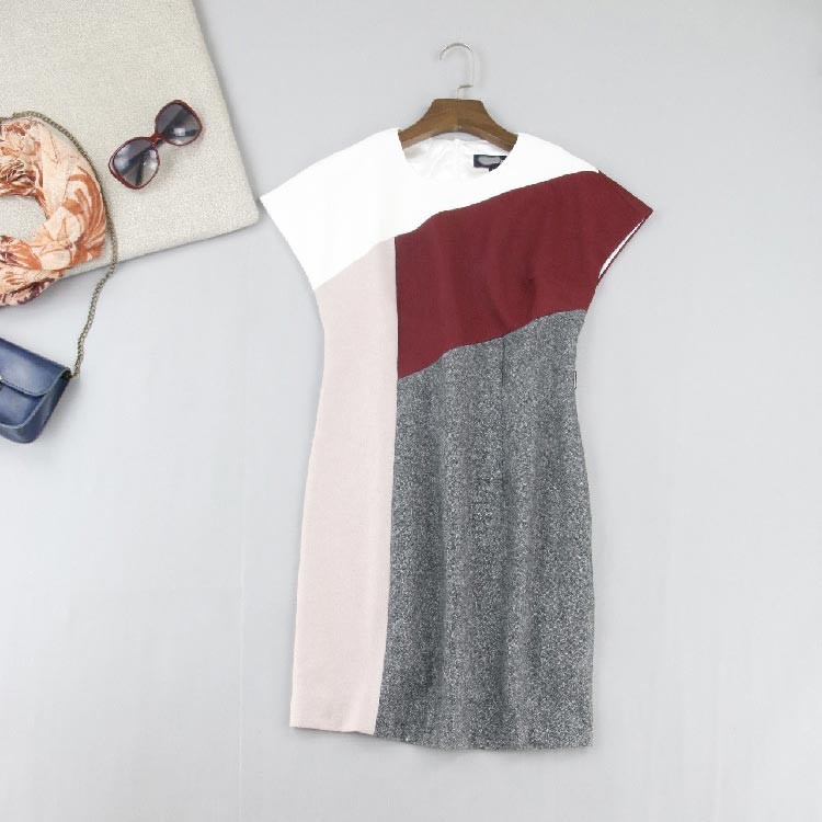 4色のマルチカラーをブロックデザインしたシックな大人のワンピース♪