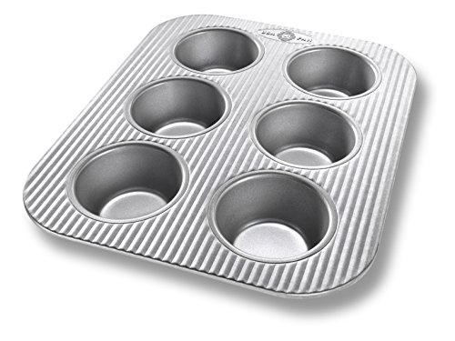 -. Binding : Kitchen -. Brand : USA Pans -. Color : Silver -. EAN : 0854776005086 -. Feature : Made in the USA Aluminized Steel 6-Cup Toaster Oven and Muffin Pan, commercial grade and heavy gauge- measures 11 x 9 Inch and 2.75 x 2.06 x 1.38 inches in each well / Unique corrugated surface design facilitates air circulation for evenly baked goods and quick release / Coated with Americoat - a silicone that is PTFE, PFOA and BPA free / 65% recycled steel and life-time warranty / USA Pan is a Bundy Family Company that has proudly manufactured high quality bakeware and provided jobs in the USA for over 50 years -. Label : USA Pan -. Manufacturer : USA Pan -. Model : 1295MF -. MPN : 1295MF -. PackageQuantity : 1 -. PartNumber : 1295MF -. ProductGroup : Kitchen -. ProductTypeName : KITCHEN -. Publisher : USA Pan -. Size : 11 x 9 x 1 1/2" -. Studio : USA Pan -. Title : USA Pan Bakeware Aluminized Steel Toaster Oven and Muffin Pan, 6-Cup -. UPC : 854776005086 -. Warranty : Lifetime warranty