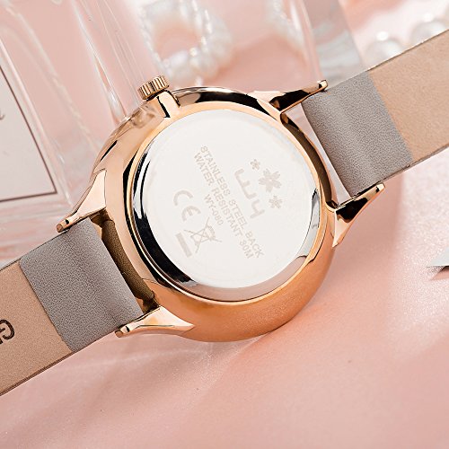 ♥Details for Durable: Selected high strength glass avoids scratching,soft genuine leather with buckle easy setting for length according your wrist and stainless steel back for daily water environment.All the details just for cozy wear experience.