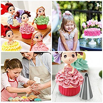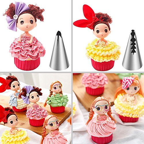 - BEST GIFT FOR BAKING ENTHUSIASTS: This baking tool with the russian piping tips, cupcake dolls, tri color couplers and reusable silicone pastry bags, you can easily make beautiful waved frill, shallow frill and double frill for cupcake doll. A great gift for every one like baking, you can give it to family, friends, colleagues and so on.