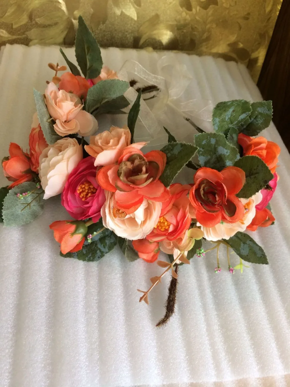 Material: Polyester is_customized: Yes color : as picture size: 17cm inner weight : 90G season : all season kind : wedding bridal Headwear Occasion: wedding/party material : polyster shape : as picture