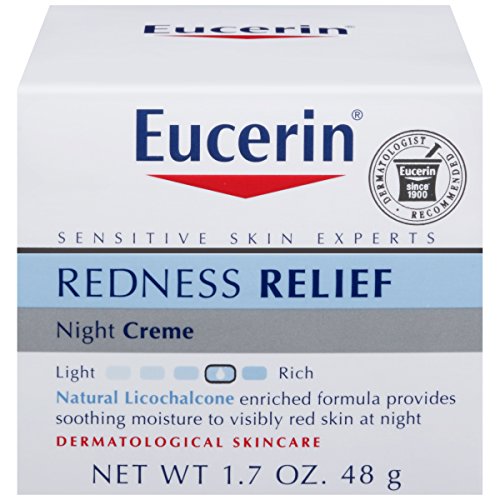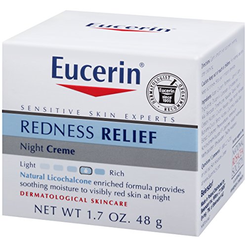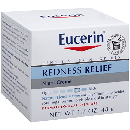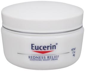 Eucerin Redness Relief is a revolutionary, clinically proven skin care system that provides immediate redness relief and improves the condition of visibly red skin in 4 weeks. Eucerin Redness Relief Soothing Night Creme provides soothing moisture to visibly red skin at night. All Eucerin Redness Relief products are safe and appropriate for sensitive skin, redness-prone skin and Rosacea.