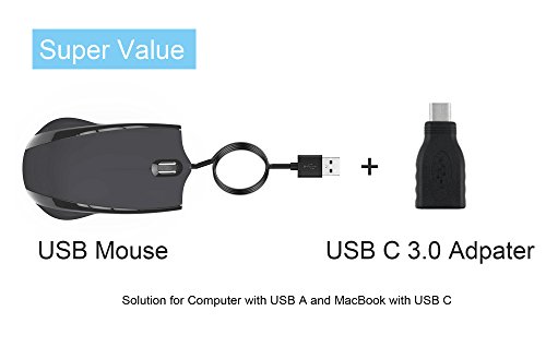 MacBook USB C Adapter+Mouse,MacBook USB C Adapter,MacBook USB C Wired Mouse, MacBook USB type C & USB A Wired Mouse Combo for Computer with USB C port or Computer with USB Type A Port( Black)