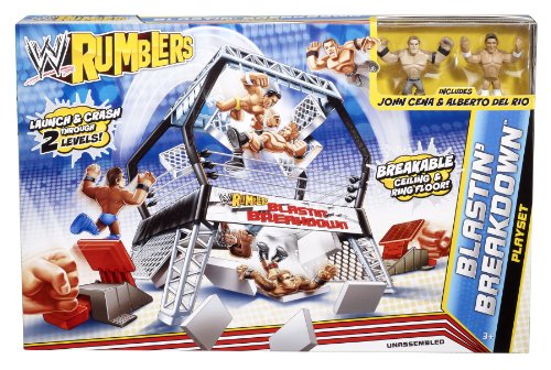 -. Binding : Toy -. Brand : Mattel -. EAN : 0794628986180 -. Feature : Bring home the officially licensed WWE action / Kids can recreate their favorite WWE matches / Launch Rumblers figures to crash through the ceiling / Play against your friends - the first to smash through the ring floor wins / Includes 1 John Cena and 1 Alberto Del Rio Rumblers figures -. IsAdultProduct : 0 -. Label : Mattel -. Manufacturer : Mattel -. Model : W8013 -. MPN : W8013 -. NumberOfItems : 1 -. PackageQuantity : 1 -. PartNumber : W8013 -. ProductGroup : Toy -. ProductTypeName : TOYS_AND_GAMES -. Publisher : Mattel -. ReleaseDate : 2013-07-28 -. Studio : Mattel -. Title : WWE Rumblers Blastin Breakdown Playset -. UPC : 885246954382 -. Warranty : 1 year warranty against manufacturer defects