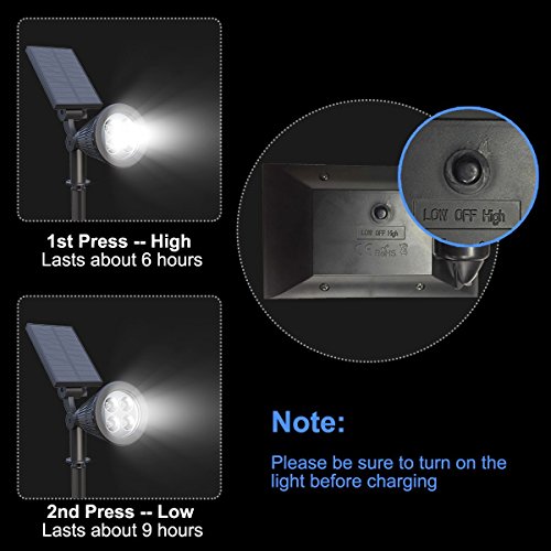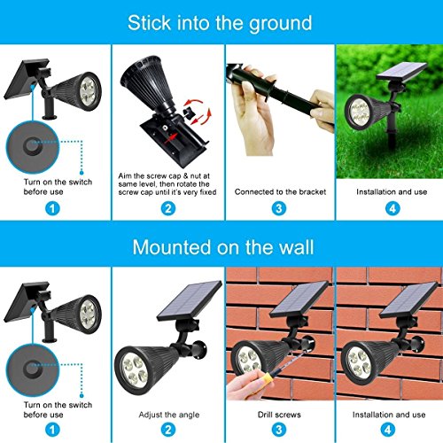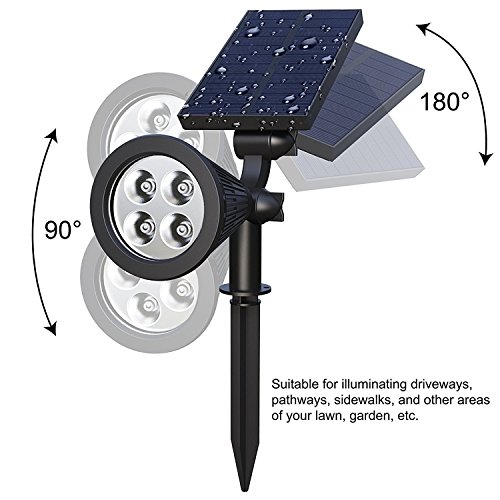 🍅【Solar Powered , Powerful Brightness】-- With solar panel, Soft Digits solar spotlight absorbs solar energy on day , helping you save energy ,money and trouble . With 4pcs 0.5w led beads, it totally giving the lumen output 200lm , our solar lights is much powerful and brighter than the standard solar landscape spotlights.You deserve to get this perfect upgraded security lamp outdoor for illuminating your driveways,lawn, sidewalks, doorway.