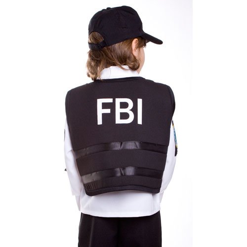 -. Binding : Toy -. Brand : Dress Up America -. Color : Black -. Department : unisex-child, , , , -. Feature : Product comes complete with: Jacket, Pants, Padded Vest and Cap / White jacket has emblem and zipper closure / Authentic looking padded vest for "bullet proof protection" emblazoned with "FBI", it has pockets and closes with Velcro, straps and buckles / Pants feature an elastic waistband for comfortable fit / This costume is impressive and official-looking, its Gentle Machine Washable ~ Flame Retardant\ -. Label : Dress Up America -. Manufacturer : Dress Up America -. Model : 482 -. MPN : 482-L -. NumberOfItems : 1 -. PackageQuantity : 1 -. PartNumber : 482-L -. ProductGroup : Toy -. ProductTypeName : TOYS_AND_GAMES -. Publisher : Dress Up America -. Size : Large -. SKU : WC23593 -. Studio : Dress Up America -. Title : FBI Agent Child Costume Affordable price