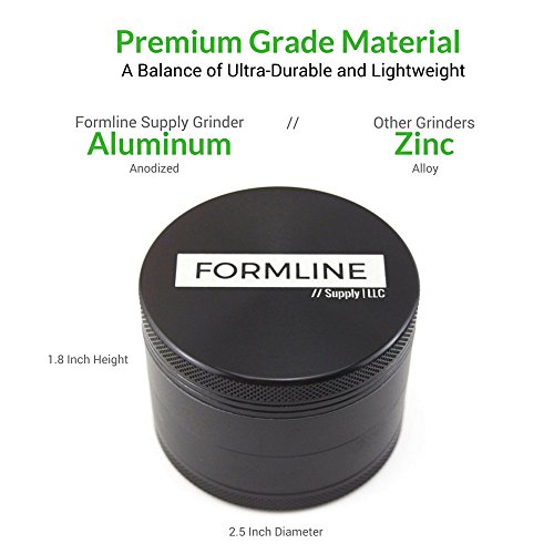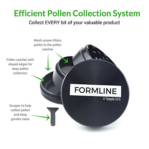 Spice Herb Grinder with Pollen Catcher - Large 4 Piece (2.5 inch) by Formline Supply - Premium Anodized Aluminum Kitchen Grinder with Sharp Curved Teeth Designed for Quality Grinds (2.5 Inch, Black)