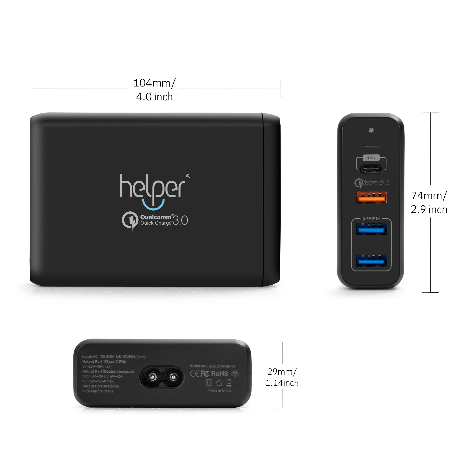 USB-C PD Output: 5 V to 20 V 3A