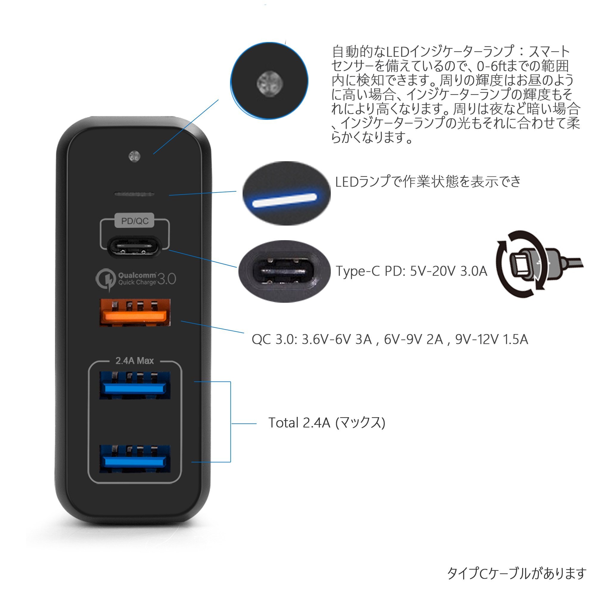 It is compatible fast charger head of Apple APPLEiphone 8 / 8PLUS / XPD 60W which is released for the first time in the world.
