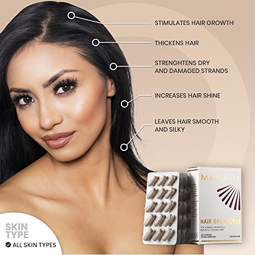 Grow confident hair that looks a head above. For years, women of color have sought high-end beauty products designed exclusively for their unique concerns. With Hair Grow Plus by Makari, everyone can enjoy a stronger, longer, thicker head of hair in as little as 30 days. Unlike high-maintenance topical treatments, this simple dietary supplement supports hair growth and wellness from deep below the scalp's surface. Enriched with plant-based vitamins and minerals from the earth and sea, these 100% drug-free capsules enhance hair's natural growth cycle by maintaining the health of both follicle and strand. Take two softgels daily with meals, and watch as dull, brittle, lifeless locks transform in no time. This everyday supplement is great for preventing breakage and promoting soft, silky smooth strands that are as beautiful as you are! Use routinely with Makari's complete line of haircare and skincare products.