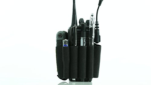 Walkie Caddie (White) - Accessory Pouch for Walkie Talkies | for Motorola CP 200 and most other Walkie Talkies | Black with White Bungee