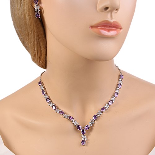 -. Title : EleQueen Women's Silver-tone Cubic Zirconia Oval Shape Leaf Bridal Necklace Earrings Set