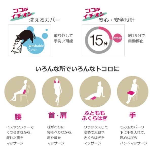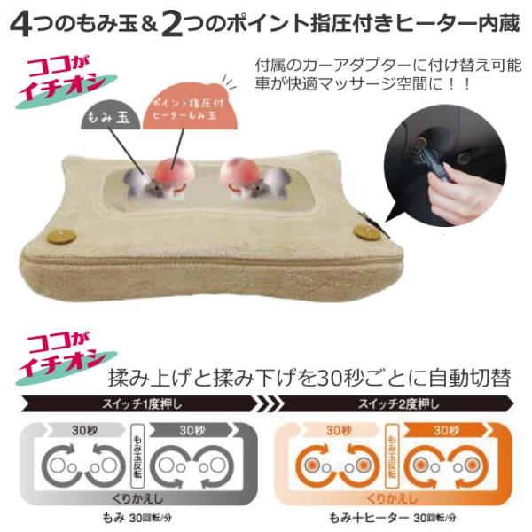 ヒーターもみ玉はポイント指圧付なので、まるでプロの手で揉みほぐしてもらっているような心地良さです。