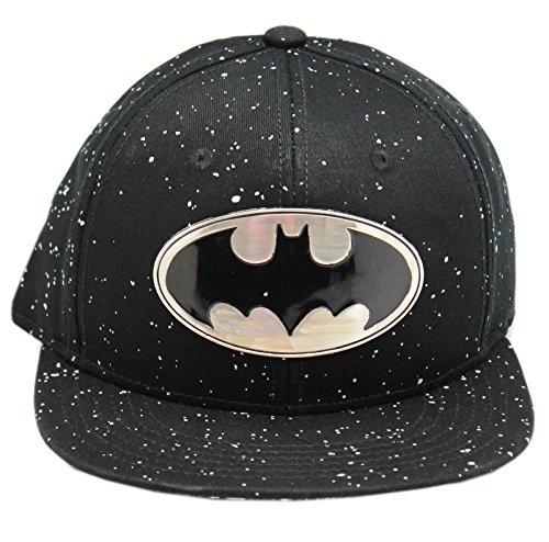 (DC Comics)/Accessories/Hats/DIRECT FROM USA/Black and Silver Plated Batman Logo Snapback Hat