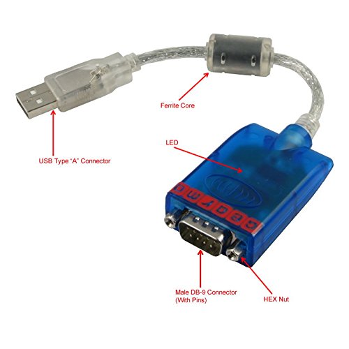 GearMo Windows 7, 8 and 10 Compatible USB Serial Adapter FTDI Chip RS232 DB-9 920K with TX/RX LED