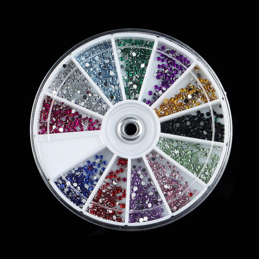 1set 3600pcs 1.5mm Round Rhinestones 12 Colors Hard Case 3d Nail Art Tips Decoration set Created Acrylic UV Gel