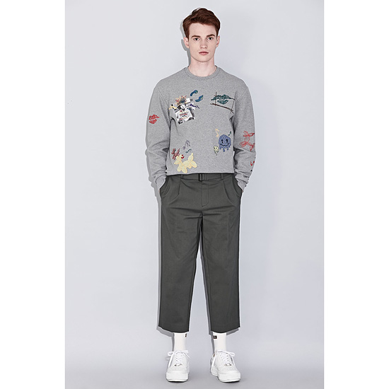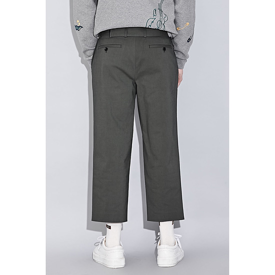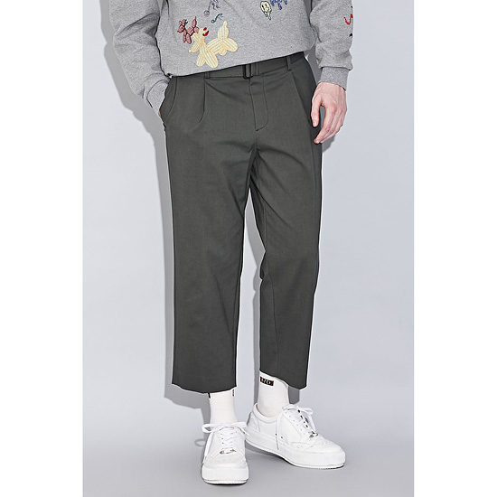 - 원턱을 잡아 여유로운 핏감과 발목이 보이는 크롭 기장으로