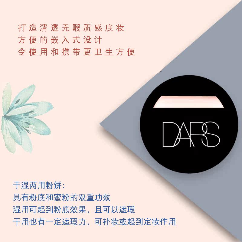 【产品名称】美国 DARS清透无瑕干湿两用粉饼配粉扑---纸盒包装 |