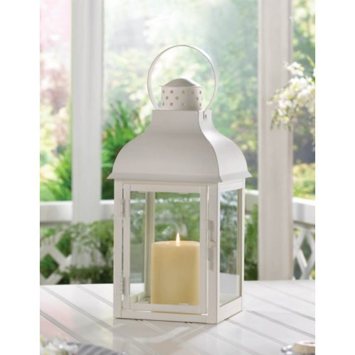 -. Feature : This large metal lantern features a soft white finish and four clear glass panels. / Material: Iron and glass. / Size: 6.62" x 6.62" x 15.8". / Item Weight: 2.8 lbs.