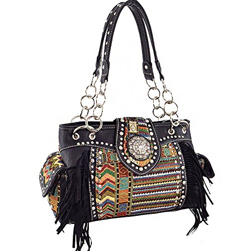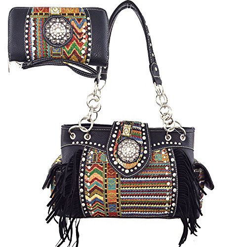 (B42-3)-Aztec print with Concho And Studs Collection handbag& wallet set-FRC893-SET