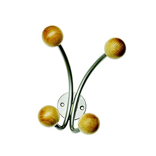 Alco Double Wall Coat Rack with 4 Wooden Coat Pegs, Metal Grey, 6 x 6 x 3.33 Inches (2822)