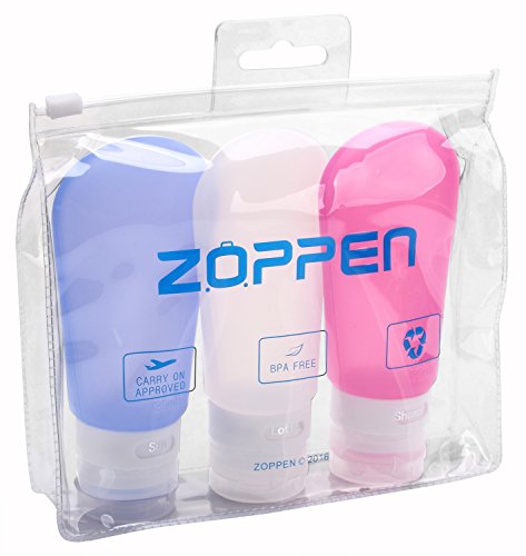 -. Brand : Zoppen -. Color : multicolored -. Department : womens -. EAN : 0711508010230 -. Feature : 3 x 3oz /89ml ( Blue White Red) in a clear bag / TSA Approval and FDA Certificated, 100% BPA free food grade soft Silicone bottles suit for ALL Ages like Adults, Teens, Kids and Babies / 3 Leak-Proof Walls Design to protect your personal items in your bag from leaks or spills, leak proof helps you to save all your contents / Large Opening allows you to fill your refillable containers easily than ever such as shampoo, lotion, conditioner, sunscreen, body wash with cleaning by soaking or by dishwasher (top rack only) / Each container has a twist to select pre-printed ID labels (shampoo, conditioner, soap, sunscreen, lotion) to identify contents of the bottle, you also have the option to label it yourself using a marker -. ProductGroup : Apparel -. ProductTypeName : LAGE -. Title : Zoppen TSA Approved Travel Bottles 3 Oz, Leak Proof Carry on Silicone Containers Set -. UPC : 711508010230