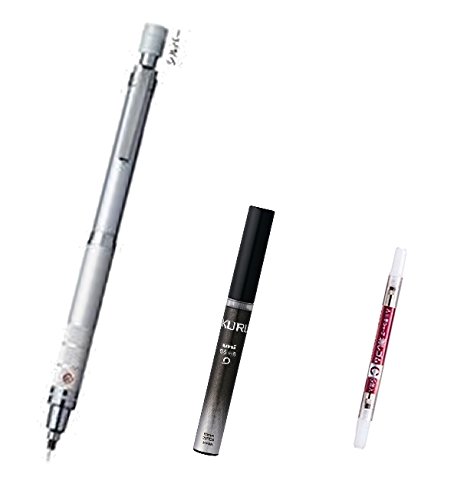 Uni Kuru Toga Roulette Model Auto Lead Rotation Mechanical Pencil 0.5 Mm - Silver Body (M5-10171P.26) with the Spare 20 Leads Only for Kuru Toga & Pencil Eraser for Kuru Toga (Set of 5) Value Set (With Our Shop Original Product Description)