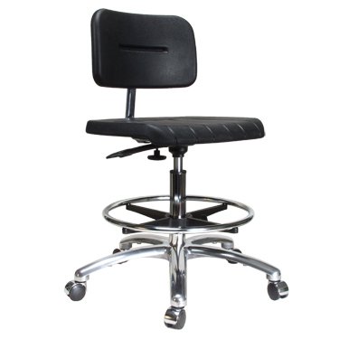 -. Binding : Kitchen -. Brand : Perch Chairs & Stools -. Color : Chrome -. Feature : 12 Year Warranty | Lifetime on Cylinders | FREE Shipping / Seat: Self-sealing polyurethane seat. 16.5"w x 15.5"d x 1.5"h. Weight capacity: 300 lbs. / Back: Self-sealing polyurethane back support. 14.5"w x 18.5"h adjusts four-ways at two points: up, down, forward & back for a personalized fit. / Adjustment system: Adjustment system allows you to adjust the pneumatic height from a seated position. 4-way back suppots adjusts in two separate points. / Base: Durable 5-leg high polished 24" diameter cast aluminum base with hooded dual wheel casters. Foot-ring: Adjustable 18" diameter cast aluminum chrome polished foot-ring for improved leg circulation on taller stools. -. Label : Perch Chairs & Stools -. Manufacturer : Perch Chairs & Stools -. ProductGroup : Home -. ProductTypeName : HOME -. Publisher : Perch Chairs & Stools -. Studio : Perch Chairs & Stools -. Title : Perch Industrial Work Chair in Chrome with Footring 20" - 28" (Hard Floor Casters)