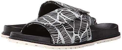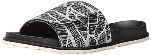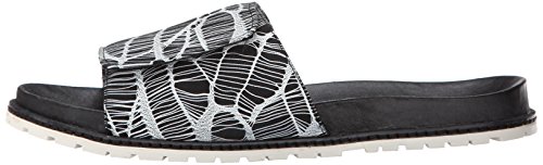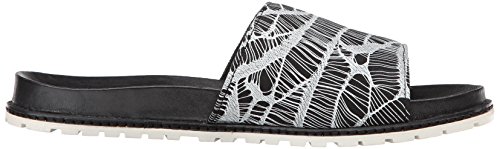 Slide sandal featuring adjustable vamp strap with hook-and-loop closure