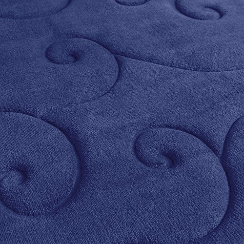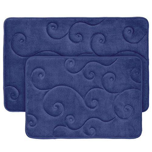 2 pc Memory Foam Bath Mat Set by Bedford Home - Coral Fleece Embossed Pattern - Navy