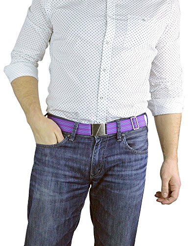 Binding : Apparel Product Description MATERIALS SIZING Material: 86% polyester, 14% elastic I am a flat, elastic belt and I will fit anyone, anywhere! I'm adjustable too. I stretch and shrink to any size! So, that means whether you're doing a weight loss program or at your favorite all-you-can-eat buffet, I'm the perfect belt for you! My elastic material is high-end quality from Europe. Width: 36 mm (1 5/16") I fit through most belt loops. But if you happen to have a pair of dress pants that have a smaller belt loop, no problem! My sister belt, "The Karma" is thinner than me. Nickel Free: Yes My nickel-free belt buckle is smooth and flat, so you'll never have any unsightly belt buckle bulges under your shirt! Better yet, move the belt buckle to the side so that there is only elastic showing at the front for a different look that makes it seem like you don't have a buckle at all! Sizing: Small 28-36", Medium 32-40", Large 36-44", X-Large 40-48" I am so comfortable; you won't even know you're wearing me. Whether you're shaped like an hourglass, a pear, an apple, an avocado, or even a broccoli, I'll fit you. Doesn't matter if you are a man or a woman - I'll fit you. If you are not sure about your size, choose the large size because you can always make me smaller with the adjuster at the side. Check out how many different colors and patterns you can find me in! I really am the best belt, ever. Made in Canada: No tax! 0 |