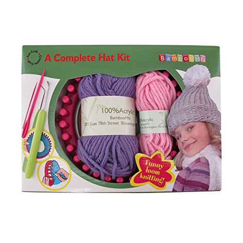 STEP-BY-STEP INSTRUCTIONS INCLUDED along with 1x round plastic knitting looms in 3.3 inch size, 1x 55 yard (or 50 m) skein of yarn for hat body, 1x 22 yard (or 20 m) skein of yarn for pompon, 1x yarn needle, 1x loom pick, 2x pompon making stencils