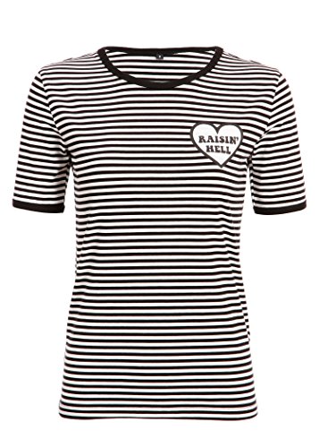 -. Binding : Apparel -. Brand : Pretty Attitude -. Department : womens -. Feature : Womens black and white striped top / With short sleeves and a crew neck / Raisin' Hell P.R.Int / Available in sizes S, M, L and XL / Made out of 100% cotton -. ProductGroup : Apparel -. ProductTypeName : SHIRT -. Title : Womens Black and White Striped RAISIN' HELL Tee T-Shirt