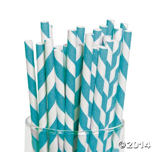 -. Title : Turquoise Paper Striped Straws (Pack of 24)